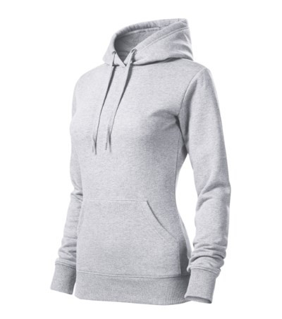 leicht taillierter Schnitt mit Seitennähten, Kapuze mit Innenfutter, durch Kordel zusammenziehbar, Innenseite des Kragens durch ein farbiges gewebtes Band versäubert, aufgesetzte Kängurutasche, unterer Rand und Ärmelmanschetten aus 2:2 Rippstrick mit 5 % Elastanzugabe, Innenseite gekämmt