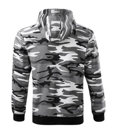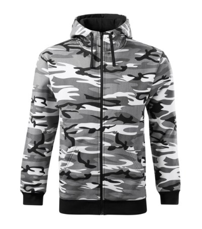 gerader Schnitt mit Seitennähten, durchgehender Reverse-Spiralreißverschluss , Kapuze mit Innenfutter, durch Kordel zusammenziehbar, Innenseite des Kragens durch ein gewebtes Band versäubert , aufgesetzte Kängurutaschen, unterer Rand und Ärmelmanschetten aus 2:2 Rippstrick mit 5 % Elastanzugabe, Kontrastdetails, Innenseite gekämmt