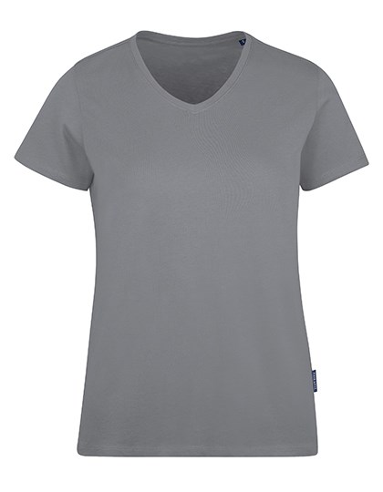 Ringgesponnene, gekämmte Bio-Baumwolle | Single Jersey | V-Ausschnitt | Modischer, körperbetonter Schnitt (leicht tailliert) | Seitennähte | Schulter-zu-Schulter Nackenband, verstärkt durch Doppelnähte | Ohne Label | Gewebtes Fair4All Flaglabel in der linken Seitennaht | Waschbar bis 60 °C und für Industriewäsche geeignet | Einlaufvorbehandelt und Antipilling | BSCI zertifizierte Produktion