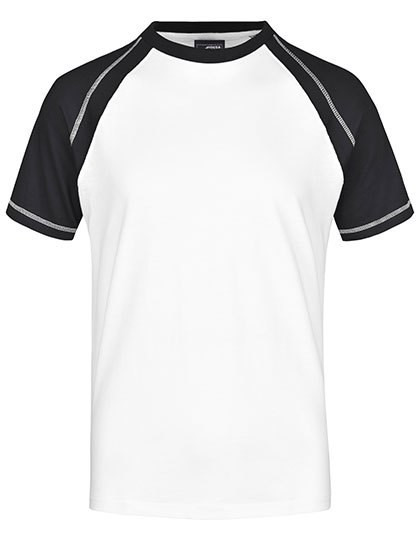 T-Shirt in sportlicher, zweifarbiger Optik | Hochwertiger Single-Jersey | Gekämmte, ringgesponnene Baumwolle | Raglan-Ärmel und Halsbündchen in Kontrastfarbe | Doppelnaht und Flatlocknähte an Ärmeln | Necktape