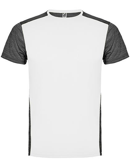 Vorderseite: 100% bird's eye Polyester, Rückseite: 100% Polyester Space Dye, 135 g/m² | Funktions-T-Shirt, kurzarm | Rundhals | Kombination von zwei Polyestergeweben an Rücken, Schultern und Ärmeln | Schnitt mit verlängertem Rücken | Schnelltrocknendes, atmungsaktives Gewebe | Herausreißbares Label | Funktionsmaterial