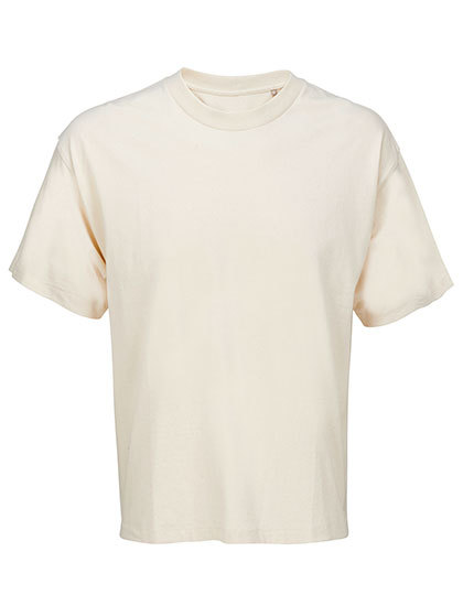 50 % recycelte Baumwolle/50 % Baumwolle | Jersey 220 | Gerippter Rundhalsausschnitt | Schlauchware | Oversize Schnitt | Überschnittener Schultern | Verstärkungsband an Nacken und Schultern
