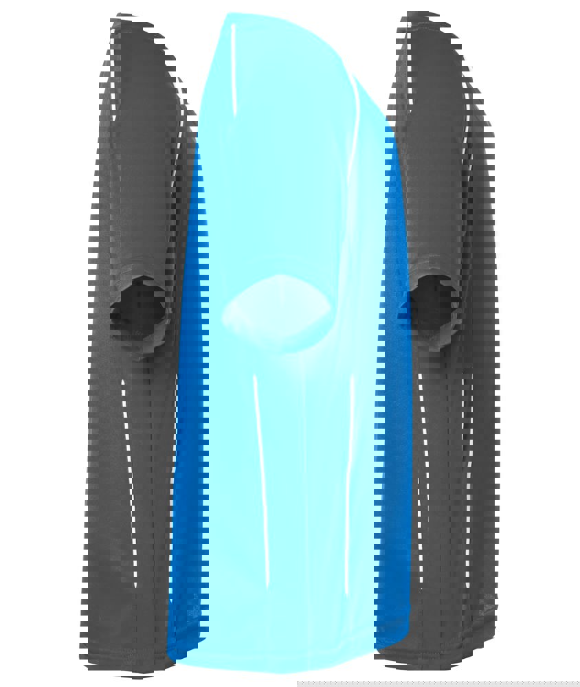 Atmungsaktiv und schnell trocknend Strapazierfähig, pflegeleicht, leicht und komfortabel Kontrastfarbige Paspel Größe: 104 1/2 Oberweite: 35 cm 1/2 Saumweite: 35 cm Länge ab Schulter Vorderteil: 42 cm Länge ab Schulter Rückenteil: 45 cm Ärmel Länge inkl. Schulter: 24 cm Raglan Atmungsaktiv V-Ausschnitt Sublimations-Textilien