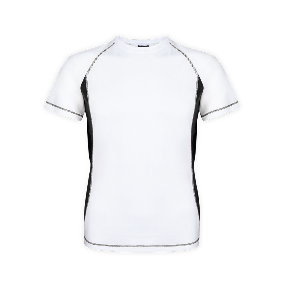Funktions-T-Shirt für Erwachsene aus 100% atmungsaktivem Polyester (135 g/m2). Design in Weiß mit Verstärkungsnähten und Seiten in kräftigen Farben. Erhältlich in den Größen S, M, L, XL und XXL.