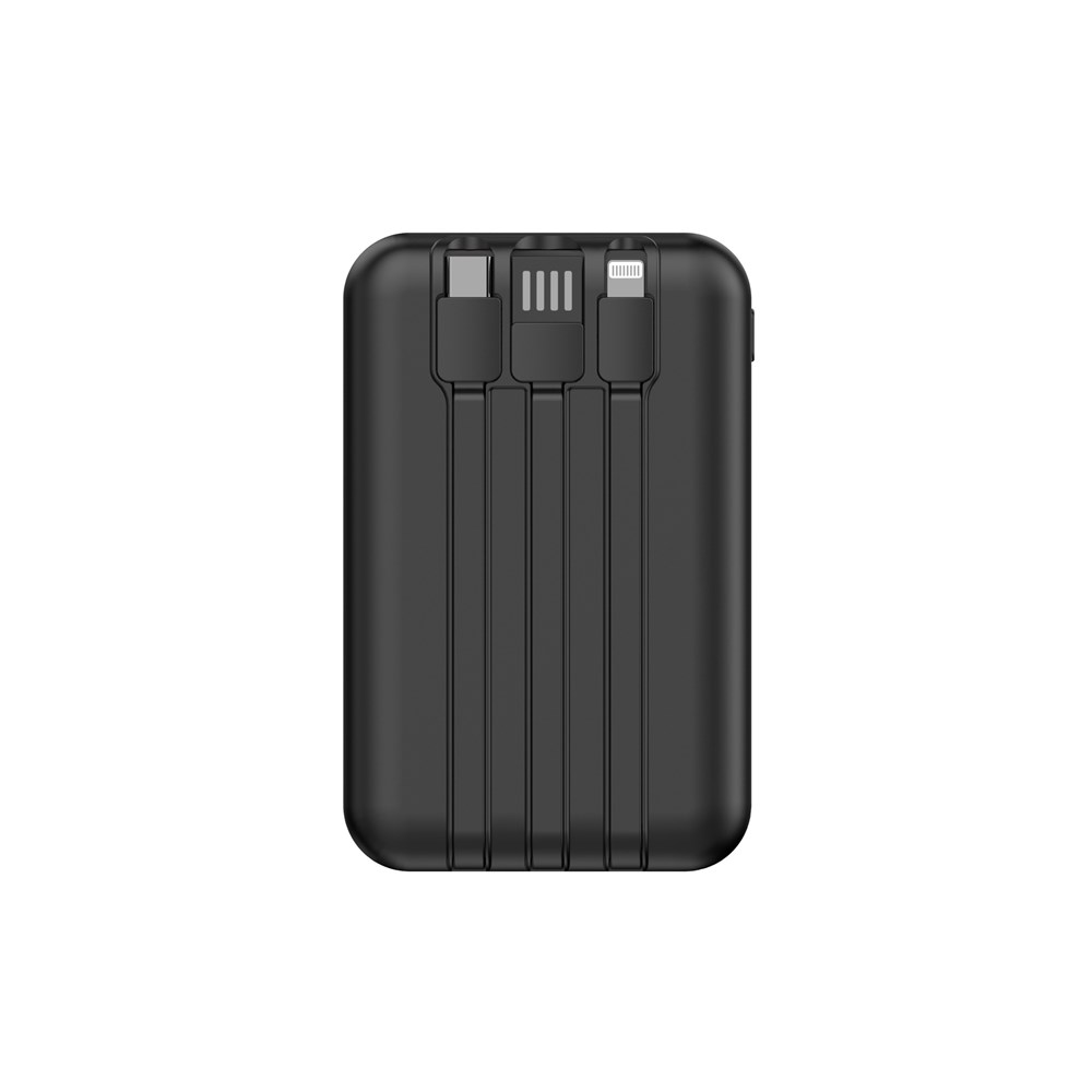 Integriertes Ladekabel USB-A auf USB-C und Lightning.