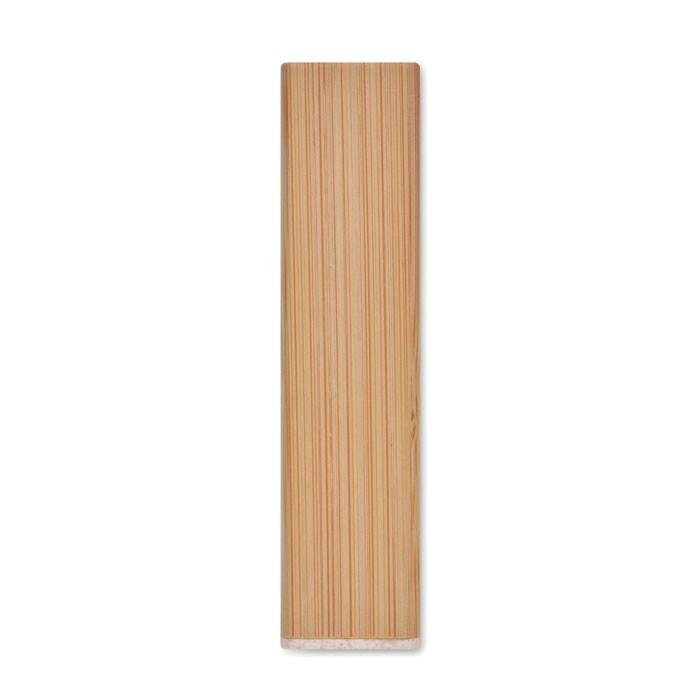 Powerbank 2600 mAh im Gehäuse aus Bambus. Geeignet zum Betrieb von Smartphones. Ausgangsstrom DC5V/1A. Inkl. USB Typ-C-Ladekabel mit Typ-A- Adapter. Eingang/Ausgang: USB Typ-C.