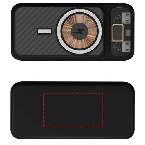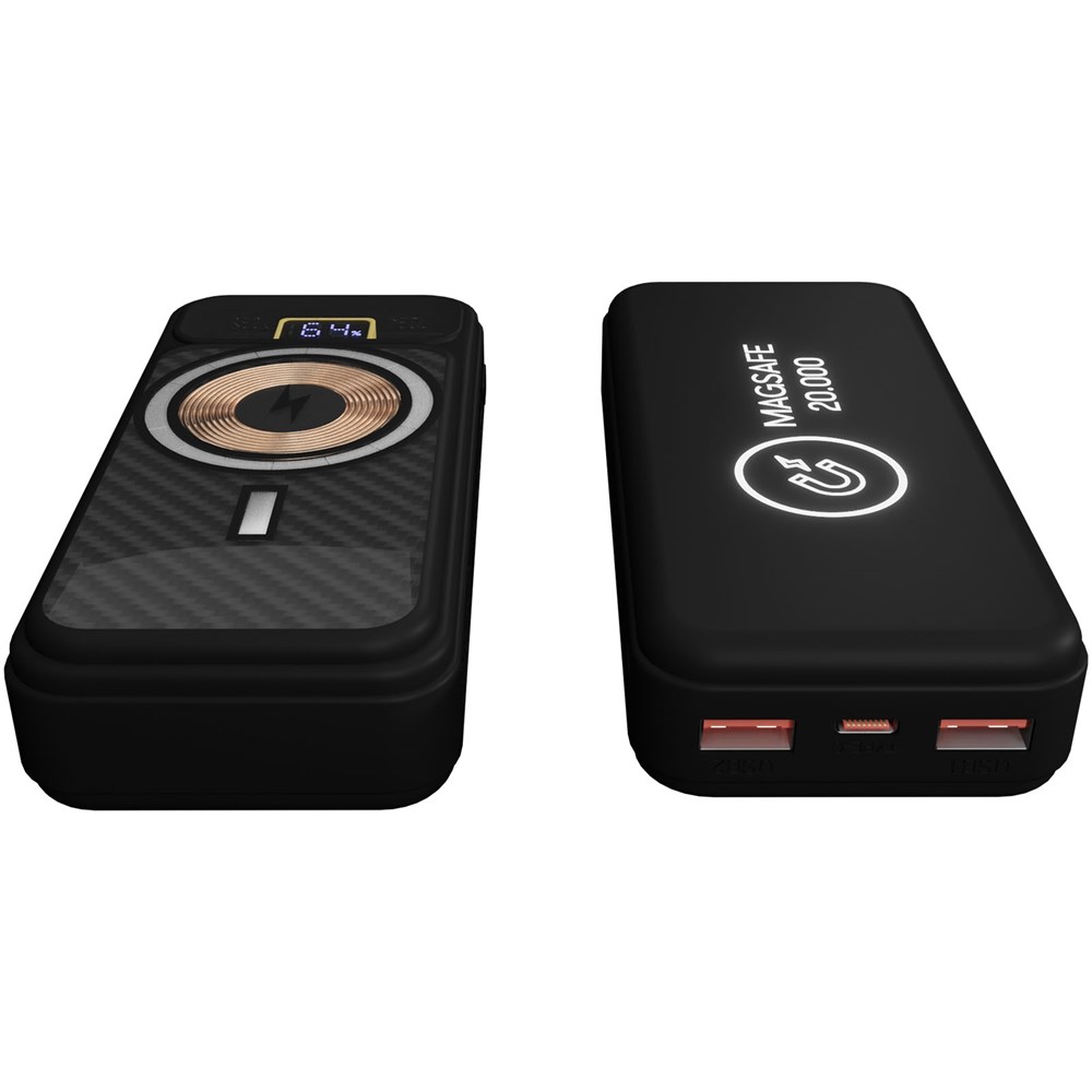 Powerbank mit 20.000 mAh Kapazität, leuchtendem Logo und MagSafe-Technologie, mit der sie magnetisch an der Rückseite eines Telefons befestigt werden kann. Durch das transparente Gehäuse, das die Platine im Inneren zeigt, wird die Technologie dieser Powerbank sichtbar. Ausgestattet mit einer digitalen Akkuanzeige und einem USB Typ-C Ausgang/Eingang. Das Gehäuse besteht zu mindestens 50 % aus recyceltem Kunststoff. Wenn Ihr Telefon nicht über die MagSafe-Technologie verfügt, können Sie den mitgelieferten Magnetaufkleber auf der Rückseite des Telefons anbringen, um es mit der mitgelieferten Magnethalterung kompatibel zu machen. Größe der Powerbank: 14,5 × 6,7 × 2,4 cm. Verpackt in einer Geschenkbox aus recyceltem Papier (18,8 × 8,48 × 3,8 cm) mit Magnetverschluss. Inklusive 3 Jahre Garantie.