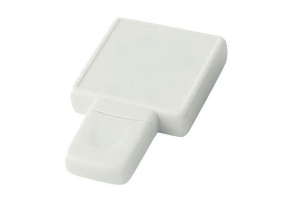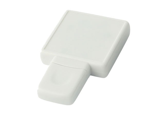 Material: Kunststoff Größe (L x B x H): 50 x 30 x 8 mm Gewicht: 7 g Standardfarbe/n: schwarz, weiß Sondereinfärbung Kunststoff in Wunschfarbe ab 1000 Stück Veredelungsart: - Doming Veredelungsbereich Vorderseite: 25 x 25mm / Rückseite: 25 x 25mm Besondere Produkteigenschaften: -