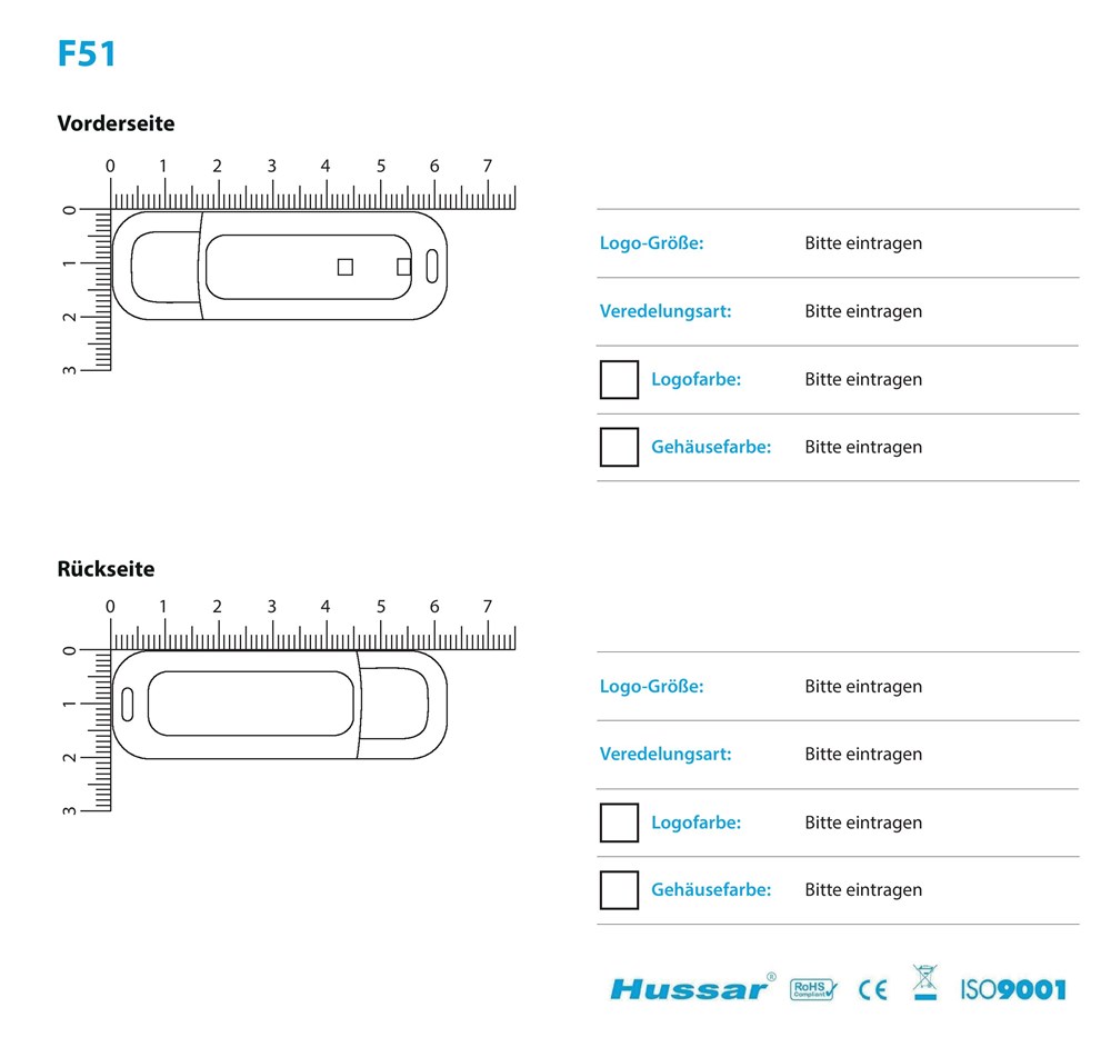 Technische Details: Speicherqualität: Verwendung von Markenspeicher z.B. folgender Hersteller: Samsung, Toshiba, Hynix, Micron, SanDisk USB-Richtgeschwindigkeit 2.0: 1GB - 64GB = Lesen: ca. 10MB/Sek. und Schreiben: ca. 3MB/Sek. Schnellere Lese und Schreibgeschwindigkeiten sind auf Anfrage erhältlich