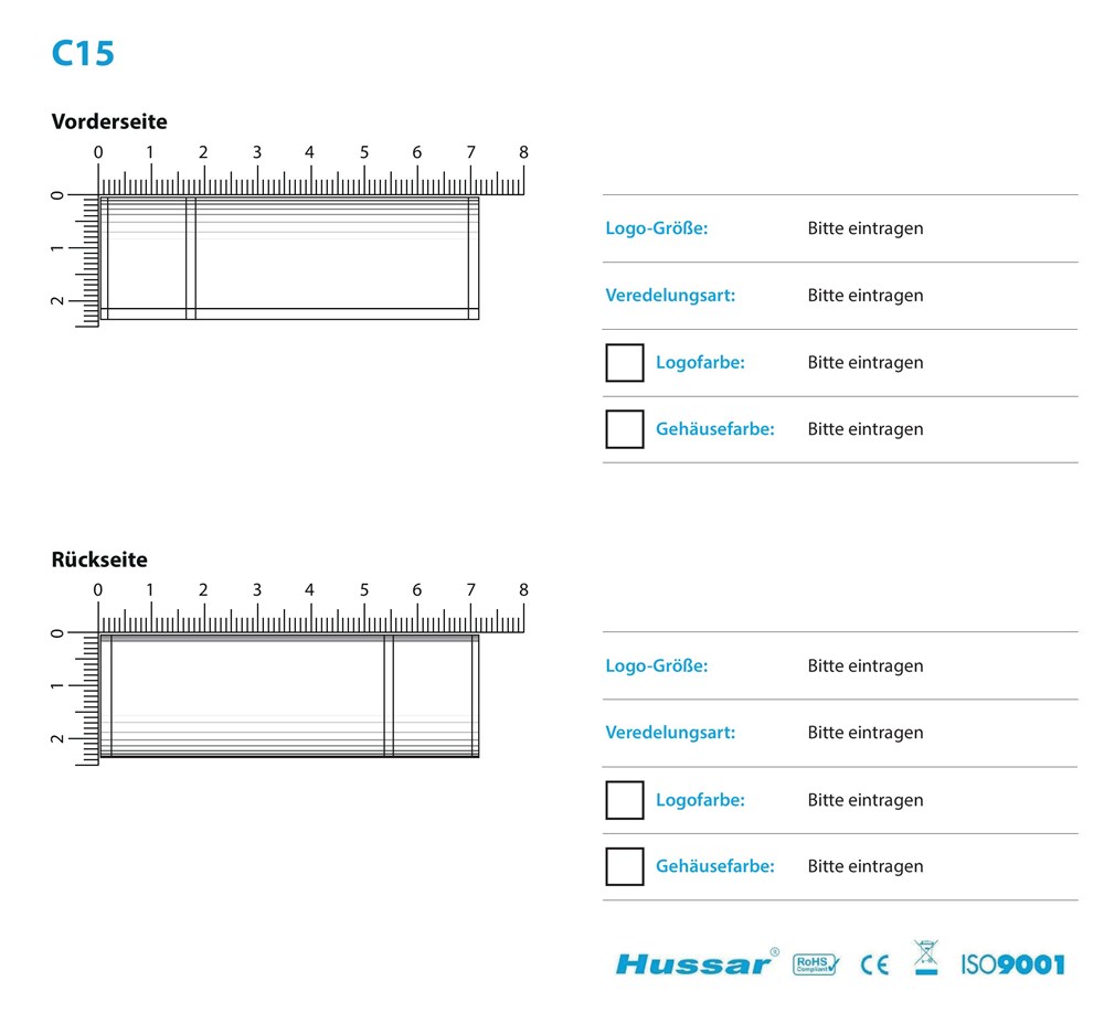 Material: Aluminium, Kunststoff Größe (L x B x H): 71 x 23 x 10 mm Gewicht: 11 g Standardfarbe/n: silber, schwarz Sondereinfärbung Kunststoff in Wunschfarbe ab 1000 Stück Veredelungsart: Gravur - Einzelnamensgravur - Druck - Digitaldruck CMYK - UV Digitaldruck Veredelungsbereich Vorderseite: 42 x 12mm / Rückseite: 42 x 12mm Besondere Produkteigenschaften: -
