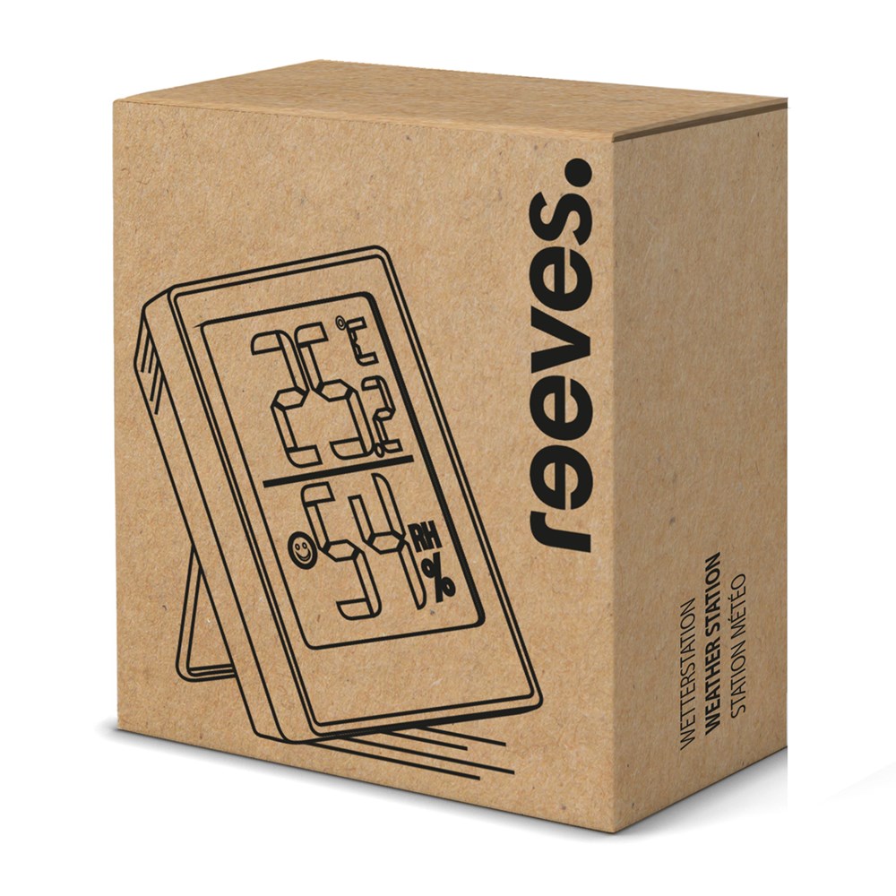 Die batterie-betriebene Wetterstation dient gleichzeitig als Thermometer und Hygrometer für Innenräume. Das Thermometer bietet einen Messbereich zwischen 0 °C und 50 °C, während das Hygrometer die Luftfeuchtigkeit zwischen 20%-95% RH misst (RH: relative Luftfeuchte, eng. „relative humidity“).